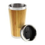 Mug de madera de Bamboo, interior de Acero Inoxidable, tapa con dosificador.