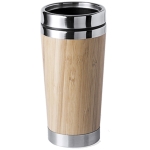 Mug de bambú y acero inoxidable SS304 exterior,con base antideslizante. Capacidad de 420 ml. Presentación en bolsa plástica dentro de caja de cartón color kraft.
