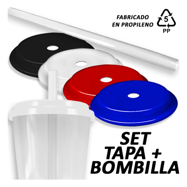 Tapa y Bombilla compatible para vasos M150 y M151. Tapa en diferentes colores, bombilla transparente. Venta exclusivamente ligada a compras de M150 y M151 en misma cantidad.