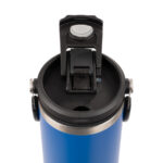 Mug térmico metálico doble pared aislante, cubierta de Polipropileno (PP) acabado mate, interior Acero inoxidable 304 SS, exterior Acero inoxidable 201 SS, modelo «HOOK». Tapa removible de plástico PP negro, con sello cilíndrico de silicona, incluye doble sistema de cierre/apertura: tapa antiderrame con tapón de silicona + boquilla para succión de líquido, bombilla plástica interior y gancho retráctil gigante, para sujetar o colgar botella. Capacidad 900ml. Producto BPA FREE, para el contacto con líquidos y alimentos. Presentación en bolsa plástica burbuja transparente + caja de regalo de cartón laminado negro.
