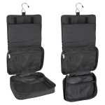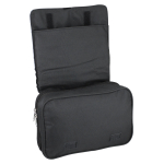Necessaire rectangular de microfibra negra. Terminaciones en simil cuero negro. Tamaño: 22 x 10 x 10 cm.