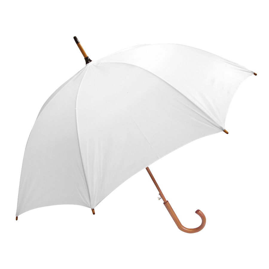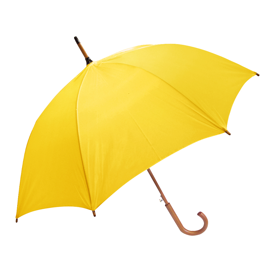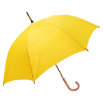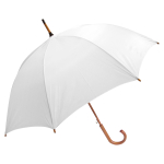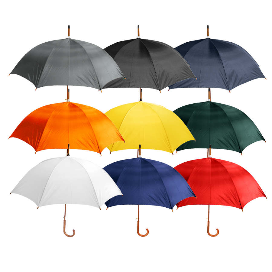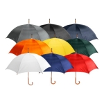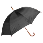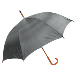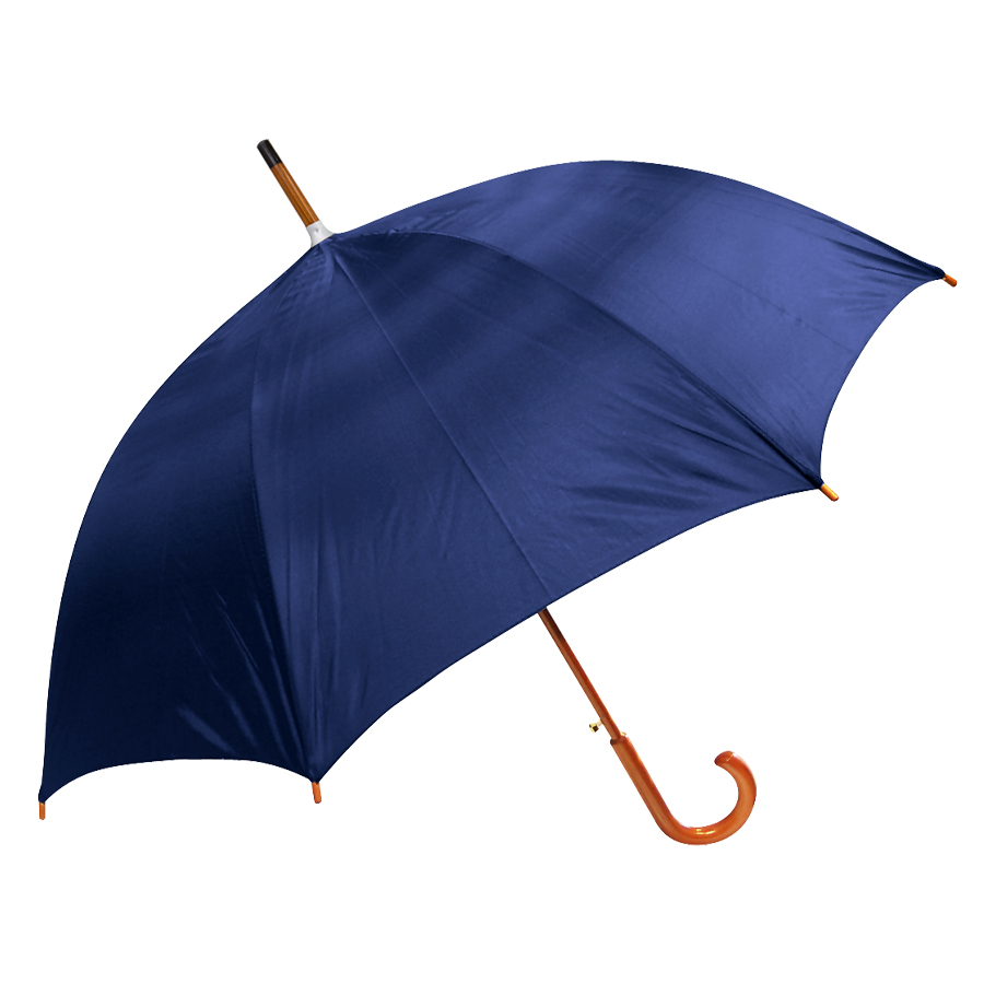 Paraguas ejecutivo con cuerpo y mango curvo de madera barnizada. Varas reforzadas de fibra de vidrio, sistema de apertura automático, 8 cascos tela Nylon 190T.