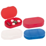 Pastillero modelo “Trizone” de PVC traslúcido empavonado, con 3 compartimentos. 6 x 3 x 1 cm.