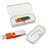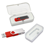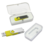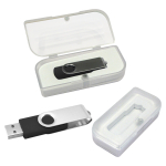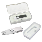 USB Pendrive con carcasa metálica de giro, de 16 GB de capacidad. Presentación en caja de PVC traslúcido.