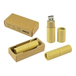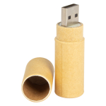 USB Pendrive 2.0 cilíndrico de 64GB de capacidad, 100% en cartón . Presentación en estuche de cartulina.