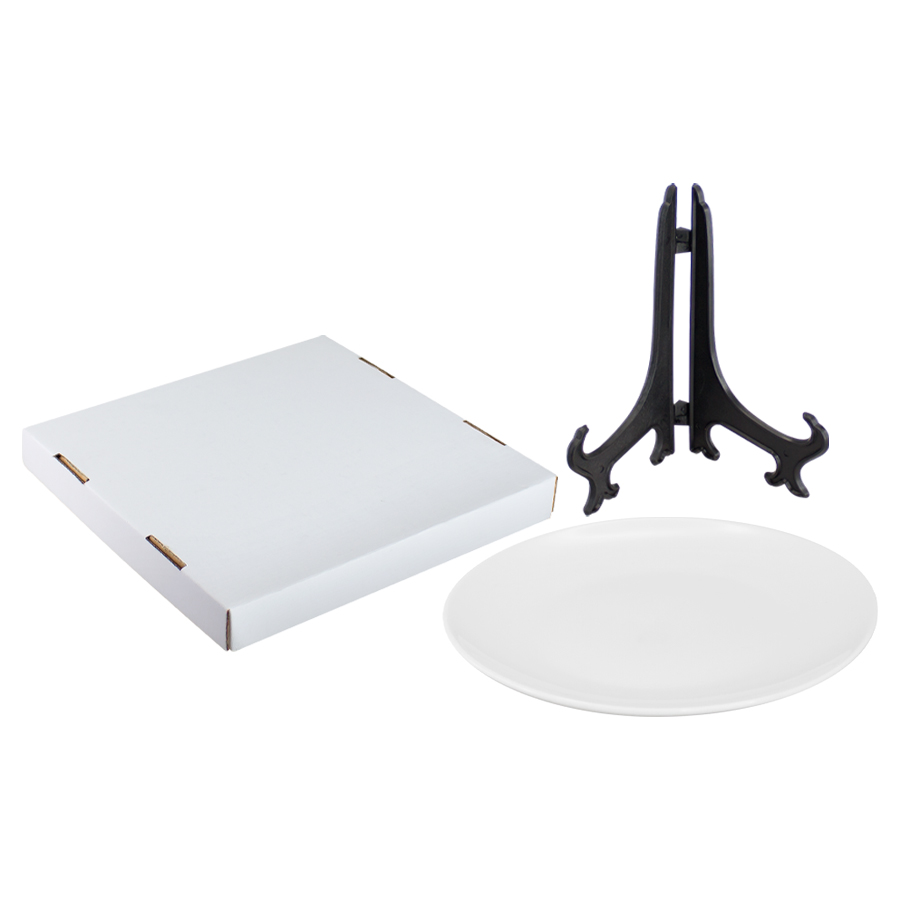 Plato de Porcelana tamaño mediano, con cobertura para Sublimación. Presentación en caja de cartón blanco. Tamaño: Ø 20.4 cm.