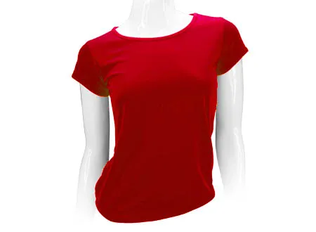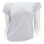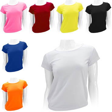 Polera 100% poliéster de 150gr/m2, para mujer. Cuello redondo, manga corta. Presentación individual en bolsa de polipropileno transparente.