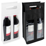 Porta-Botellas de vino, para 2 unidades, en tela no tejida (TNT) de 80g/m2, con ventanas frontales de PVC clear.17 x 36 x 10 cm aprox.