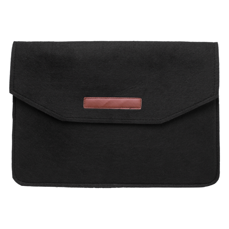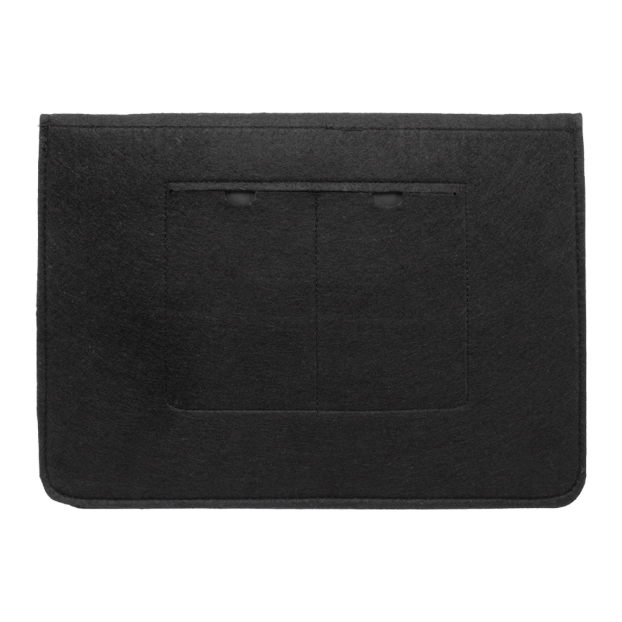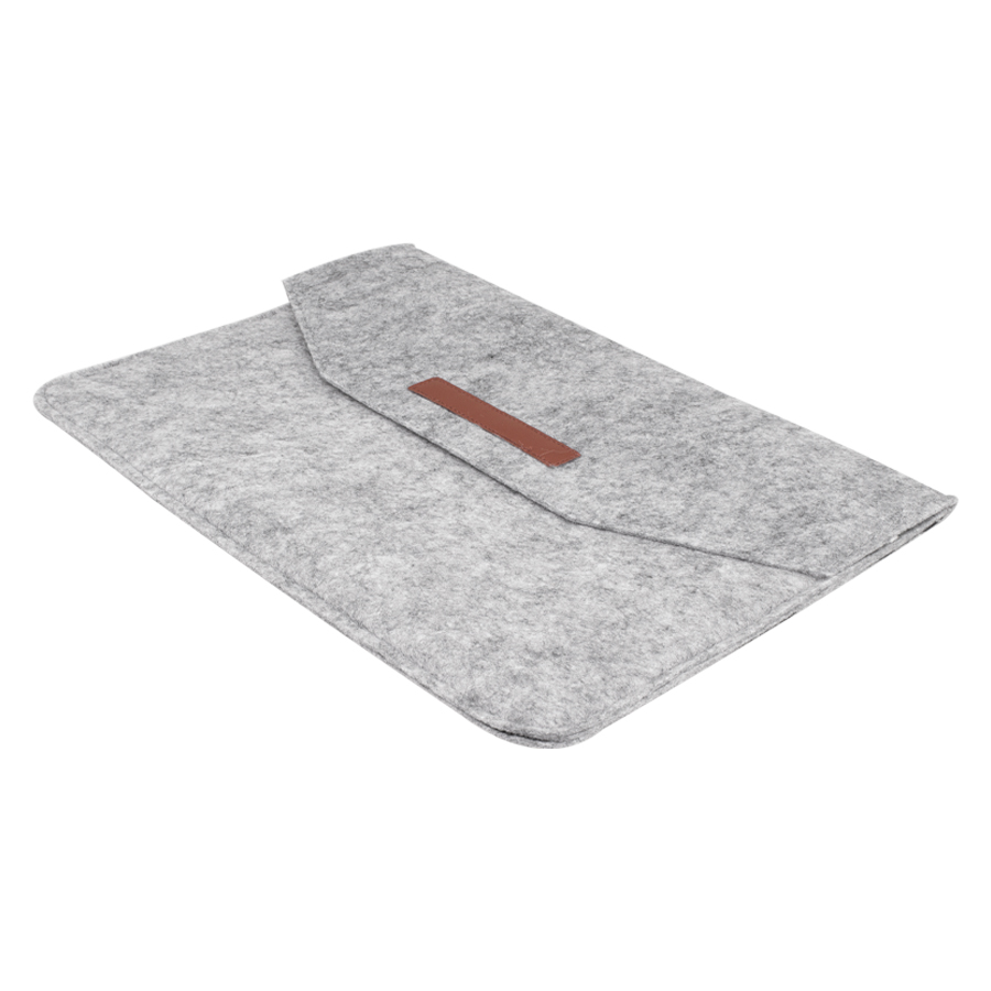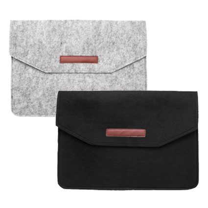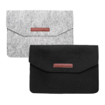 Funda Porta-Documentos de Fieltro, modelo «Executive», con 2 bolsillos posteriores, 1 bolsillo anterior, cierre velcro y etiqueta de cuero de 10×2 cm, para imprimir o grabar logo. Tamaño: 36 x 25 cm. aprox.