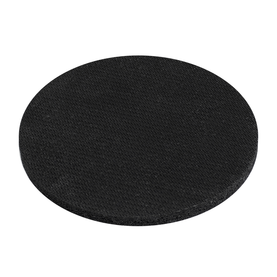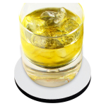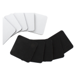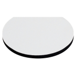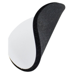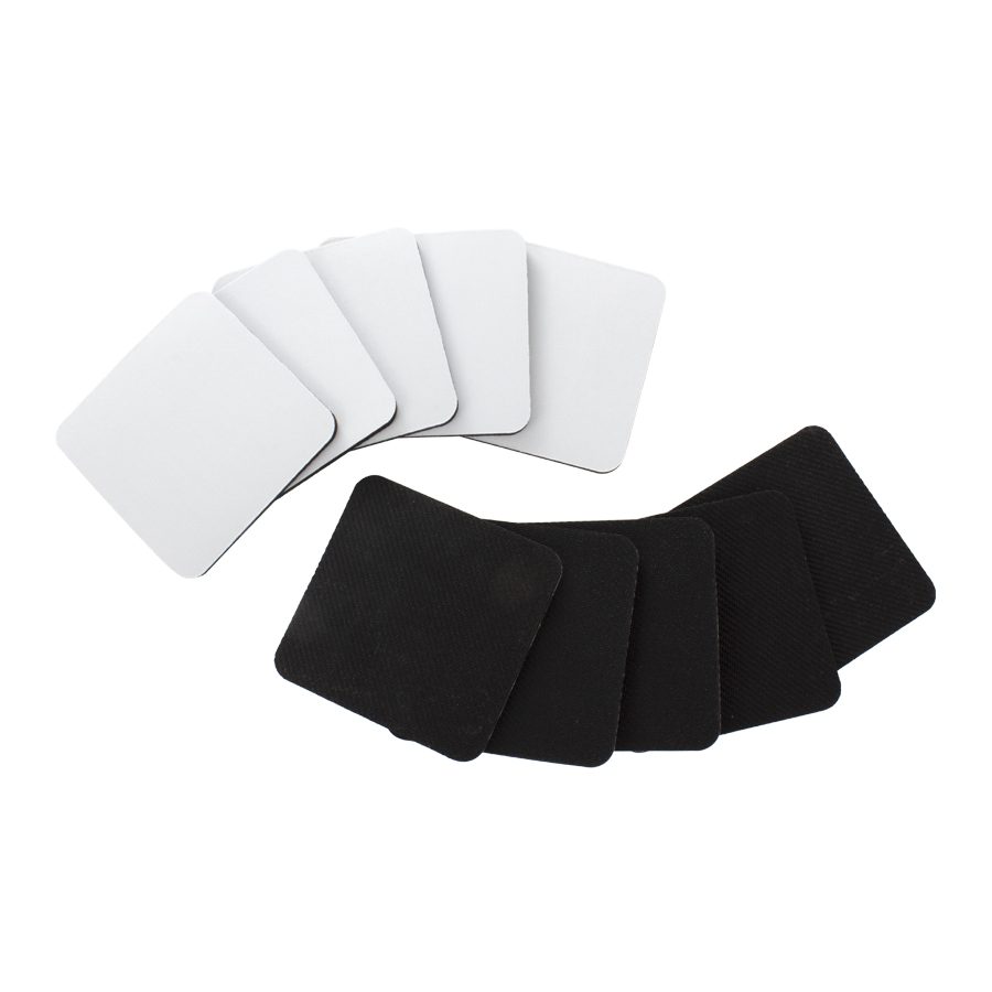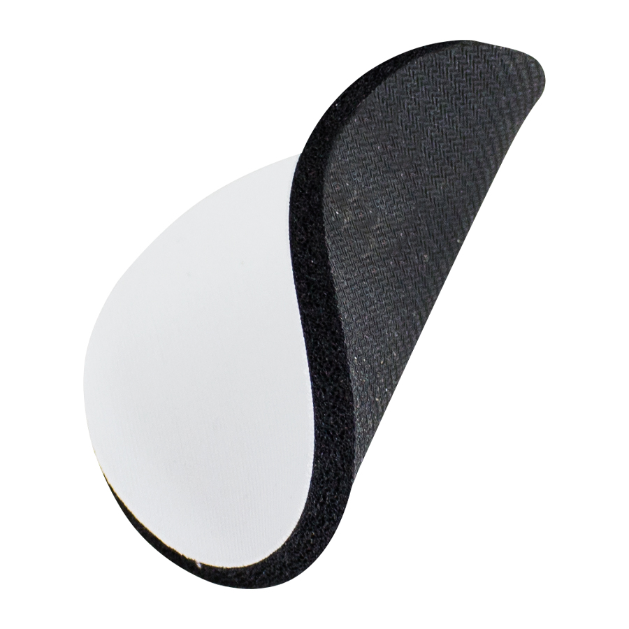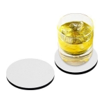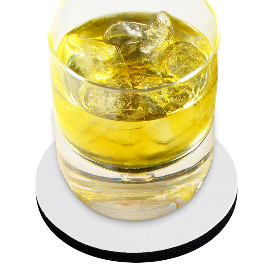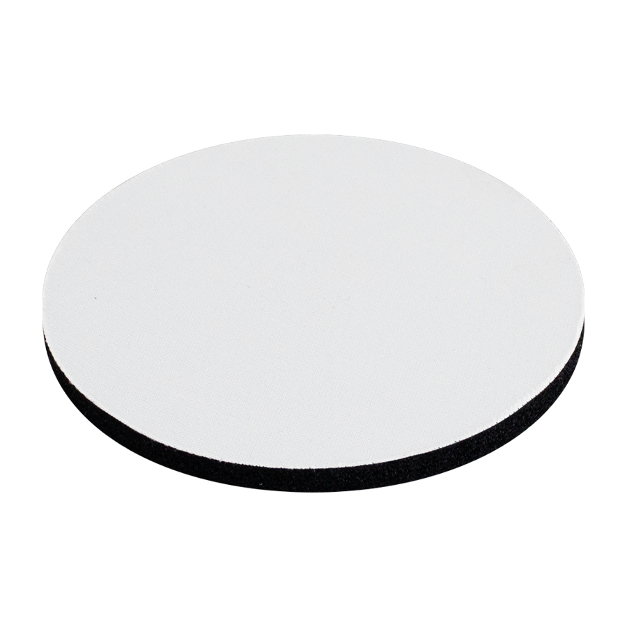 Posa vaso redondo de 5mm de espesor y 9cm. de diámetro, con base de silicona negra y cubierta de tela blanca Disponible también en cuadrado de 10×10 cm. para Sublimación.