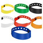 Pulsera promocional de PVC con cierre de seguridad. Tamaño: 24.3 x 2 cm. Sugerencia de impresión Serigrafía.