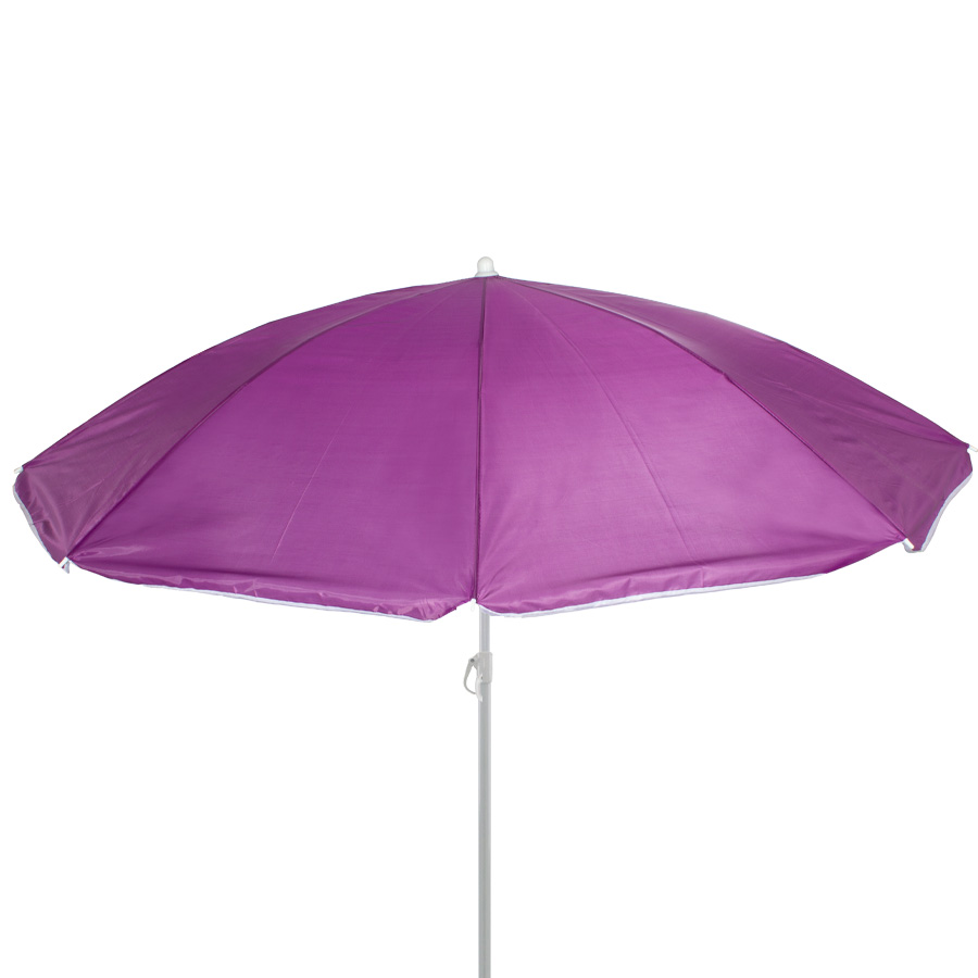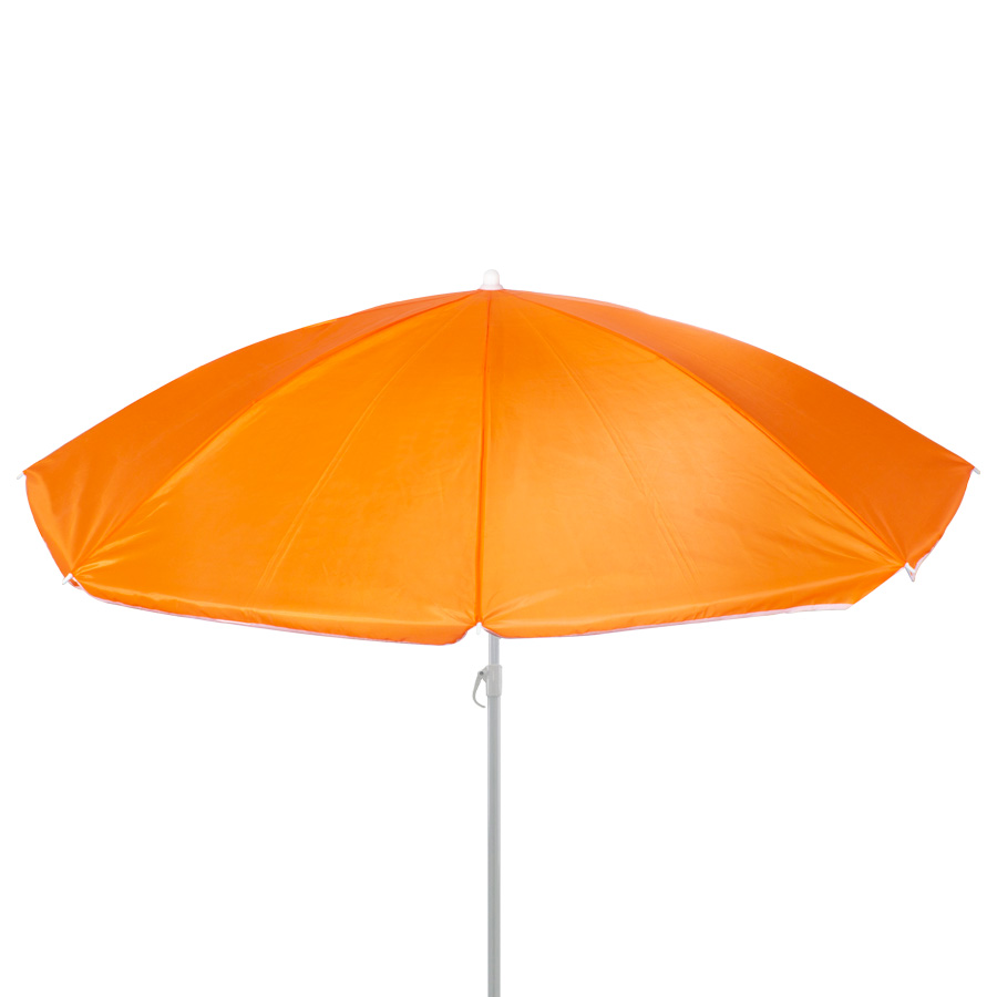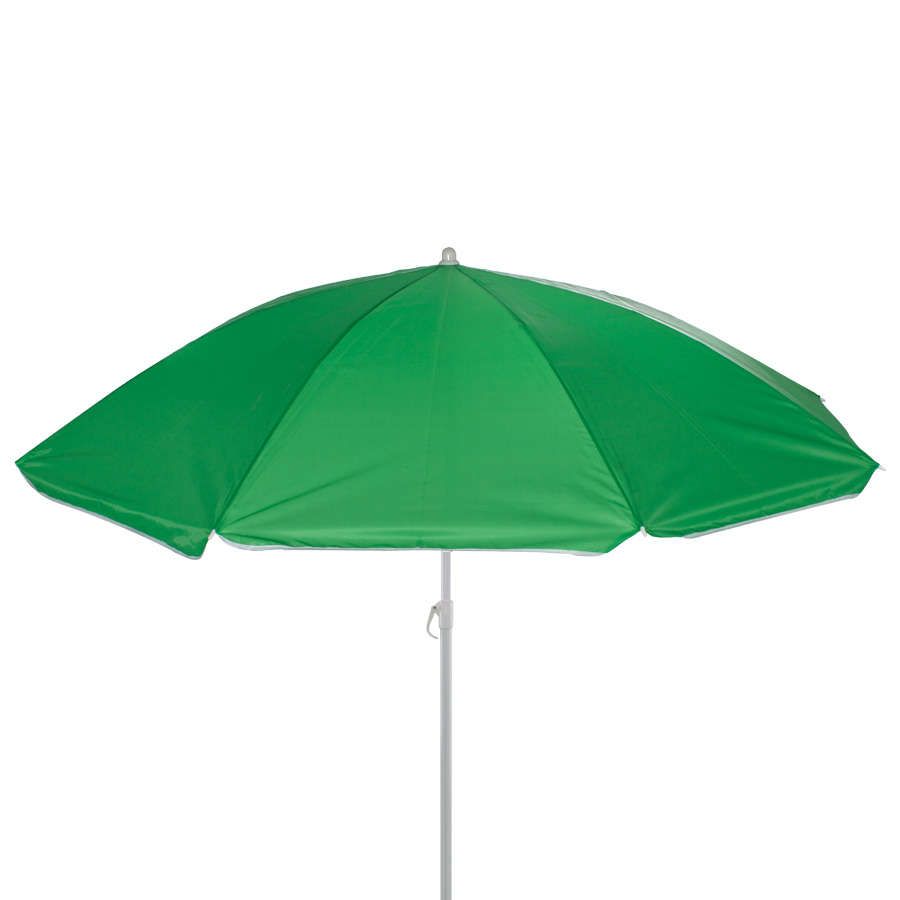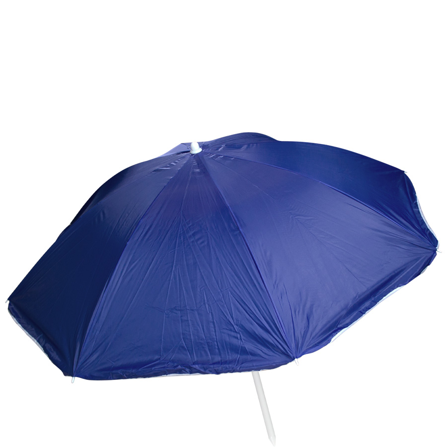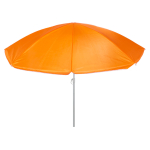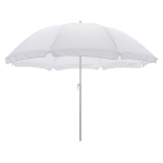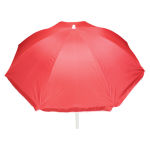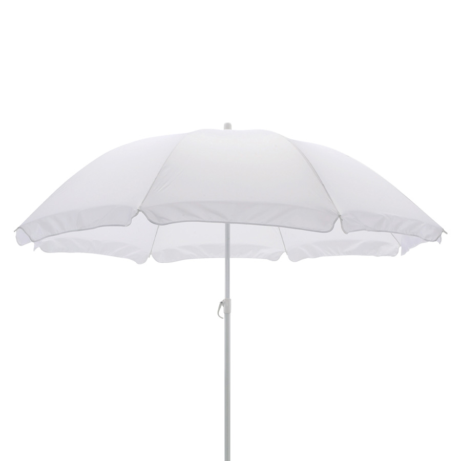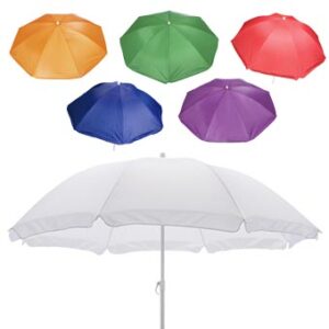 Quitasol de 8 cascos en tela Nylon 190T. Incluye 2 varas metálicas blancas desmontables, la inferior de 101 cm y la superior de 95 cm. Presentación en funda de PVC transparente con broche. Tamaño: Arco 170 cm / Ø 140 cm / Alto 196 cm.