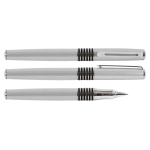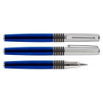 Bolígrafo metálico grueso modelo "Metal Gross", con terminales cromados. Refill metal cross type. Escritura azul.