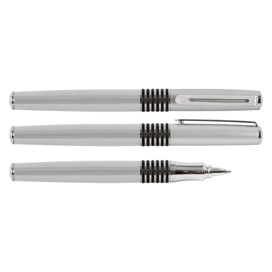 Bolígrafo Metálico modelo "Hotel", con goma posterior negra "Touch-Screen" para pantalla táctil. Escritura negra.