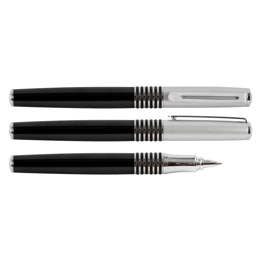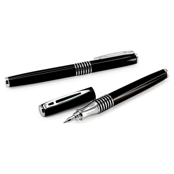 Bolígrafo Metálico negro "Tourist", con terminales dorados. Especial para el rubro Hotelería y Turismo. Escritura negra.