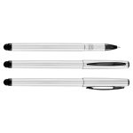 Roller Pen plástico modelo «Cooper» con puntero touch-screen para pantalla táctil, tinta negra. Cuerpo de color metalizado.