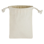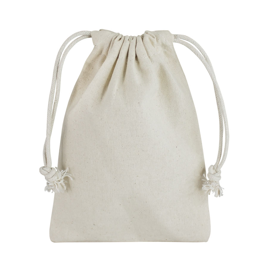 Saquito de algodón de 5 onzas (132gr/m2), ideal para la entrega de productos pequeños. Lavable, reutilizable y 100% biodegradable.15x10 cm.