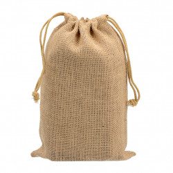 Modelo de saquito mediano hecho con fibras de yute y cordeles para cierre. Las fibras de yute entregan resistencia y durabilidad además de una presentación rústica, llamativa y natural.30×20.