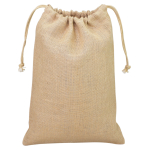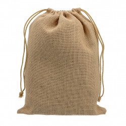 Modelo de saquito mediano hecho con fibras de yute y cordeles para cierre. Las fibras de yute entregan resistencia y durabilidad además de una presentación rústica, llamativa y natural.30x20.