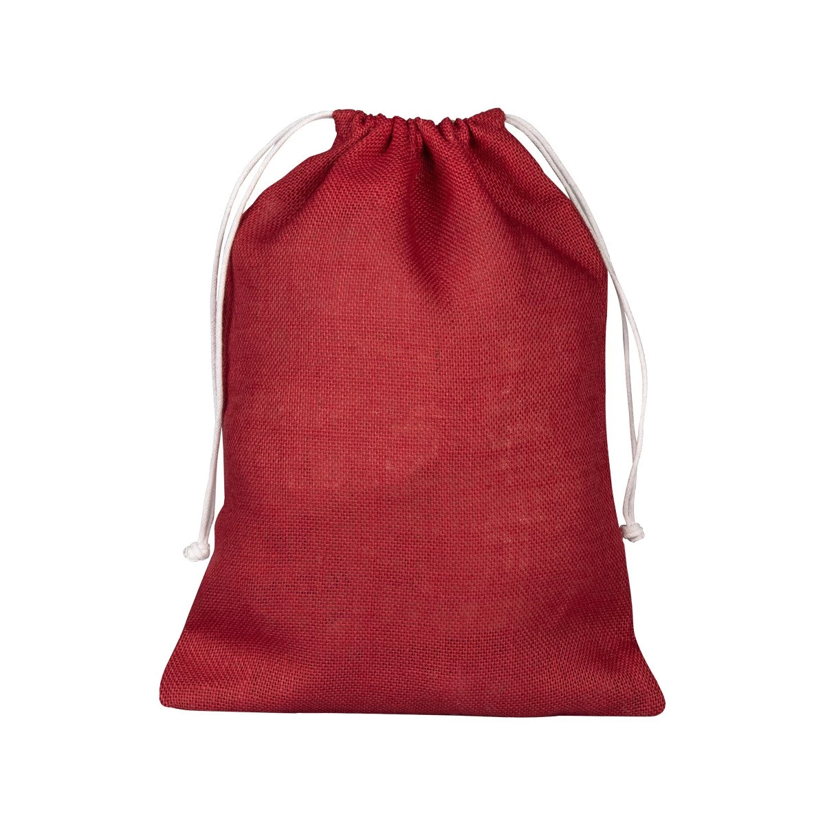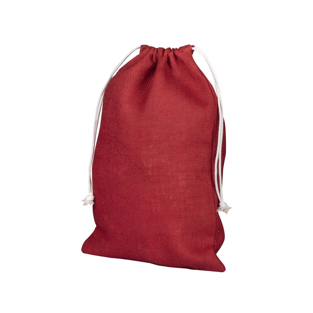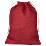 Modelo de saquito pequeño hecho con fibras de yute en color rojo y cordeles de algodón para cierre. Las fibras de yute entregan resistencia y durabilidad además de una presentación rústica, llamativa y natural.19x14.Los saquitos de yute son un regalo promocional altamente útil y efectivo porque son ecológicos, resistentes y versátiles, reforzando una imagen de marca sostenible y de calidad, ideales para empaques de productos a granel (café, té, cosméticos) o como obsequios en eventos, ya que se reutilizan en el día a día, manteniendo la marca visible y transmitiendo responsabilidad ambiental a los clientes. Son biodegradables y provienen de una planta de rápido crecimiento, alineándose con la imagen "eco-friendly" que buscan las empresas y clientes.