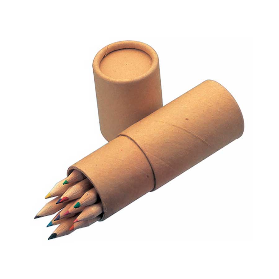Set de 12 Lápices Grafito de Color, en Estuche cilíndrico de Cartón Reciclado. El regalo ideal para los niños. Tamaño: 10 x Ø 3.3 cm