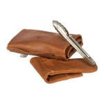 Un regalo fuera de serie. Deluxe set de Asador, contiene Pechera de Asador BBQ en Cuero tostado 100% genuino color café cognac, con cintas y porta-accesorios de Cuero 100% genuino color café oscuro. Remaches de acero envejecido y bolsillo delantero de 20.5 x 23 cm. Cuadrado para logo de 8 x 8 cm. Contiene además largo mitón de Asador BBQ en Cuero engamuzado 100% genuino color café cognac y tenazas de Acero inoxidable. Presentación en elegante caja de regalo de cartón negro con ventana de mica transparente y gráfica a todo color con descripción de los elementos del set.