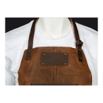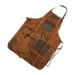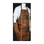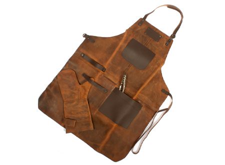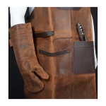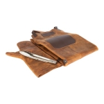 Un regalo fuera de serie. Deluxe set de Asador, contiene Pechera de Asador BBQ en cuero curtido, envejecido y suavizado 100% genuino color café cognac, con cintas y porta-accesorios de Cuero 100% genuino color café oscuro. Remaches de acero envejecido y 2 bolsillos delanteros de 22 x 18 cm. y 18 x 14 cm. Rectángulo para logo de 10 x 5 cm. Contiene además largo mitón de Asador BBQ en cuero curtido, envejecido y suavisado 100% genuino color café cognac y tenazas de Acero inoxidable. Presentación en elegante caja de regalo de cartón negro con ventana de mica transparente y gráfica a todo color con descripción de los elementos del set.