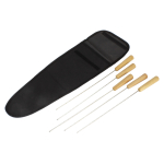 Set de 5 fierros para anticuchos con mango de madera, en estuche de tela raquelada. Fácil para bordar o imprimir. Tamaño: 47 x 19 cm (aprox).