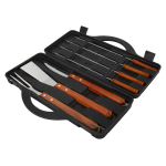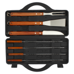 Set de 7 herramientas de BBQ en Maletín de plástico duro negro. Con ventana rectangular lisa exterior para aplicar logo.