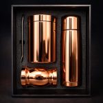 Set de Mate color cobre, incluye bolso transportable. Lata para Mate color cobre galvanizado de acero inoxidable SS201: Ø9,5 x 15,8 cms. 1100 ml. Termo color cobre galvanizado de acero inoxidable SS201/304 : Ø6,8 x 24 cms. 500 ml. Mate color cobre galvanizado de acero inoxidable SS201/304: Ø8 x 11 cms. 240 ml. Bombilla acero inoxidable SS304 Termo para líquidos calientes o fríos.