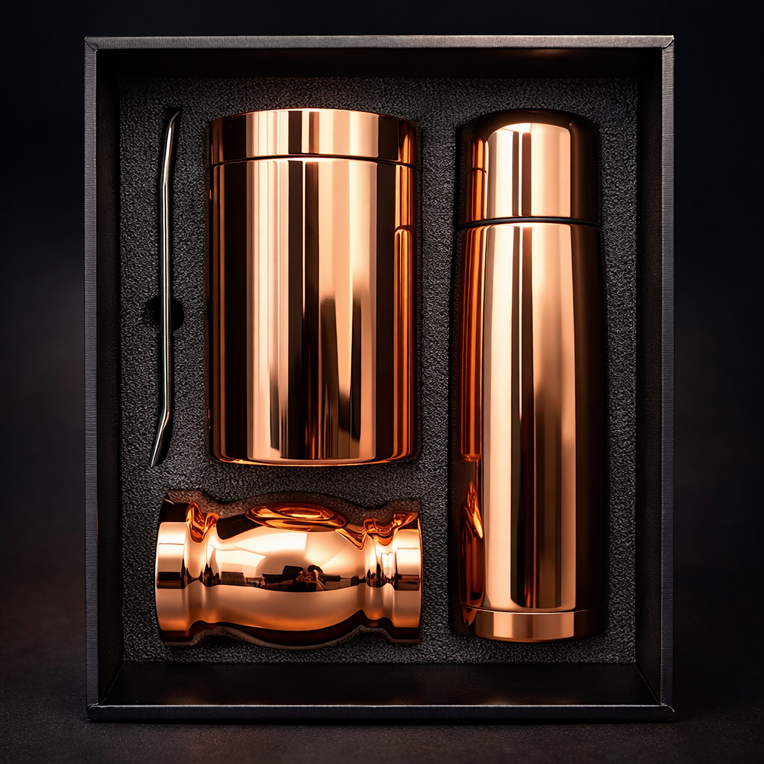 Regalar el Set de Mate color Cobre con Bolso como producto promocional ofrece beneficios clave: destaca por su diseño elegante y moderno en color cobre, aporta alto valor percibido por su calidad premium y durabilidad (acero inoxidable), y garantiza portabilidad gracias al bolso incluido. Es un regalo útil que fomenta momentos de unión y tradición. El diseño elegante y el color cobre lo convierten en un objeto atractivo que los clientes querrán usar y exhibir, garantizando una exposición constante de la marca. Al ser de acero inoxidable galvanizado, ofrece una larga vida útil, lo que asegura que la marca sea recordada durante mucho tiempo. Es un regalo de gama alta, lo que fortalece la imagen de la empresa como una marca que valora la calidad y a sus clientes. El bolso incluido facilita el transporte del termo y mate, siendo ideal para viajes, trabajo o actividades al aire libre, lo que aumenta la frecuencia de uso y la visibilidad de la marca.