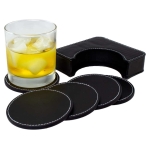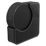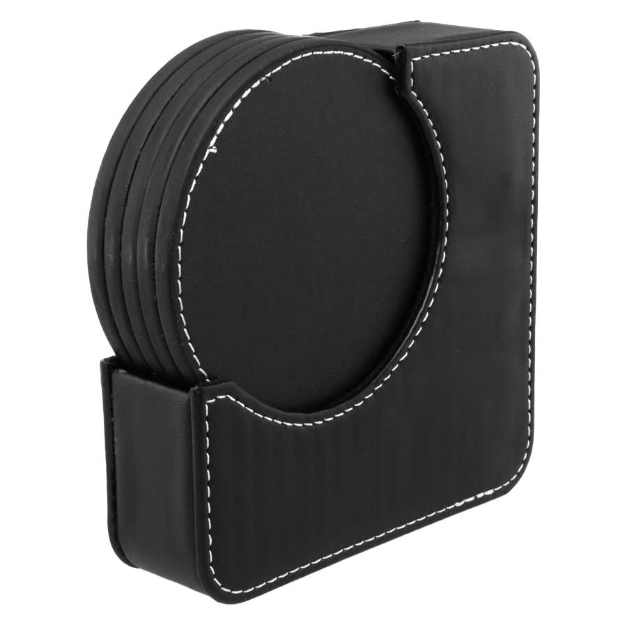 Set de 6 posavasos redondos, en PU negro. Incluye contenedor cuadrado. Infaltable en tu bar. Tamaño: 12.2 x 12.2 x 3.2cm / Cada Posavaso Ø 9 cm.