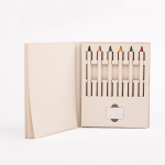 BALEARES es un set diseñado para inspirar creatividad consciente desde el primer trazo. Elaborado con cartón reciclado de envases lácteos, incluye una libreta de 50 hojas, una goma de borrar y 6 lápices sin tinta (inkless), ofreciendo una alternativa sustentable a los materiales escolares y de oficina tradicionales. El papel, con su característico tono blanco grisáceo, conserva la esencia natural del material reciclado, reflejando una estética honesta y responsable. BALEARES es ideal para marcas que desean transmitir un mensaje auténtico de innovación circular, promoviendo el uso de recursos recuperados como parte de un nuevo ciclo creativo.