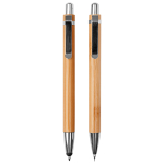 Set con portaminas B9 y bolígrafo B22 dentro de caja de cartón símil bambú.