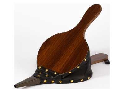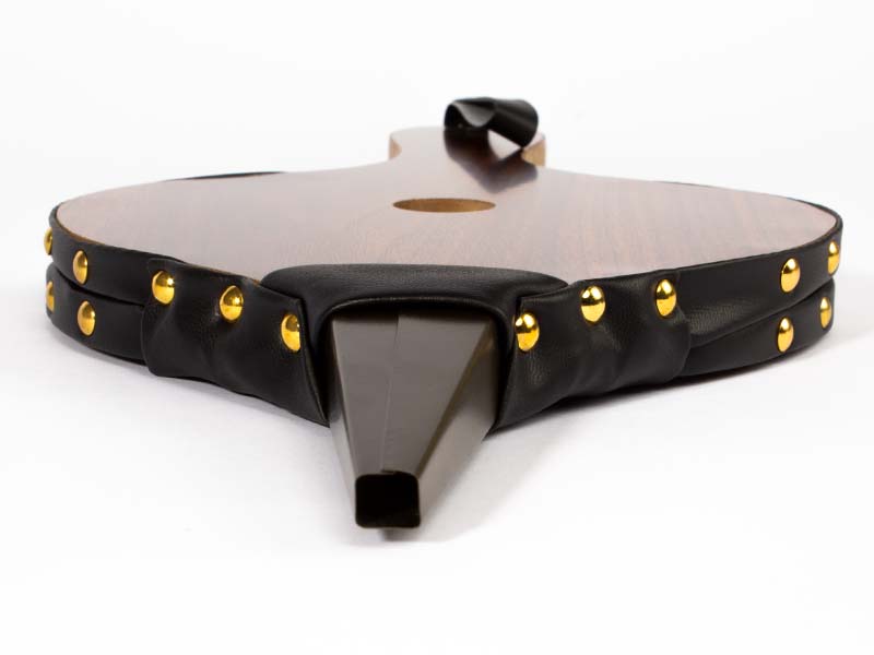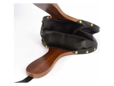Soplador grande de aire tipo Acordeón, para chimeneas y parrillas. Superficie MDF, reforzado con cuero y tachas. Toma de aire posterior. Amplia superficie para logo.43 x 19 cm.