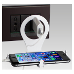 Soporte para Cargador y Celular. Permite ubicar el celular en el mismo lugar de la carga en la toma de corriente. Plegable. Contiene topes adaptables a los distinos tamaños de celular.