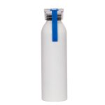 Sport Bottle botella metálica de Aluminio modelo «MARATHON», con tapa rosca de plástico PP translúcido, banda colgante de silicona y anillo interior anti-derrame. Producto BPA FREE, para el contacto con líquidos y alimentos. Capacidad 600ml. Presentación en bolsa plástico burbuja + caja de regalo de cartón lacado color negro. IMPORTANTE: esta botella NO es térmica, apta sólo para líquidos fríos.Ø6.6 x H23 cm.
