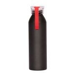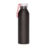 Botella metálica de aluminio con tapa rosca. Capacidad de 600ml. Presentación en caja individual negra. Tamaño: Ø6,6 cms. x 23,5 cms.