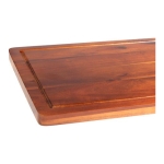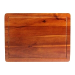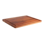 Amplia tabla de madera sólida de ACACIA, para cortar y servir carnes y pescados. Ideal también para verduras y/o selección de quesos. Madera trabajada y acabada en máquina, de forma 100% regular, con superficies, laterales y cantos lisos y suaves, para una mayor higiene y comodidad al momento de cortar y servir alimentos. La Acacia, junto con la Teca, es considerada la mejor, más dura y más resistente madera para utilizar para cortes de alimentos – Densidad aprox. 770kg/m3. – Dureza 9.5 (test de Monnin) 40 x 30 x 2 cm. aprox.