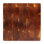 Fina tabla cuadrada de madera sólida de ACACIA con piezas integradas, diseño único para sorprender! Ideal para cortar y/o servir verduras, quesos, frutos secos o picoteo. Madera trabajada y acabada en máquina, de forma 100% regular, con superficies, laterales y cantos suaves y redondeados, para una mayor higiene y comodidad al momento de cortar y servir alimentos. La Acacia, junto con la Teca, es considerada la mejor, más dura y más resistente madera para utilizar para cortes de alimentos – Densidad aprox. 770kg/m3. – Dureza 9.5 (test de Monnin).30 x 30 x 2.5 cm. aprox. H64.