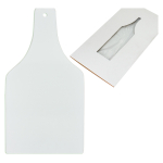 Tabla de Cocina para cortar alimentos, forma de botella, en vidrio texturado para Sublimación. Presentación en caja de cartón blanco.18.8 x 35.7 x 0.4 cm.