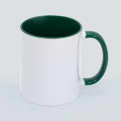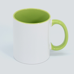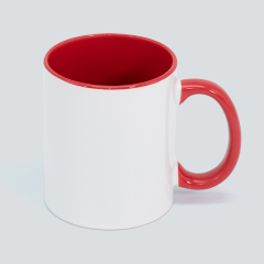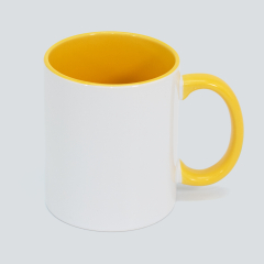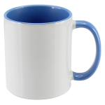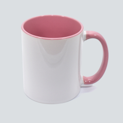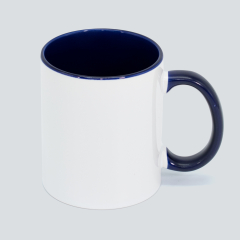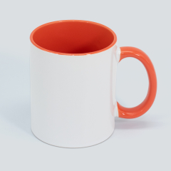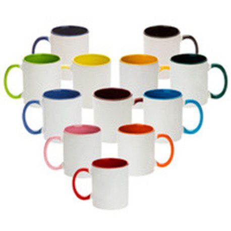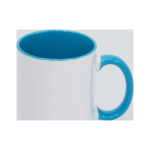 Tazón Cerámico blanco con interior y asa de color, cobertura exterior con polímero especial marca ORCA COATINGS(R) para una sublimación de primera calidad. Cada unidad se entrega dentro de su caja individual de cartón blanco.