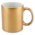 Tazón Cerámico exterior dorado, interior blanco. Con cobertura exterior especial «Polycoat» para sublimación. Cada tazón se entrega dentro de su caja individual de cartón blanco.