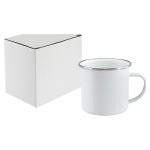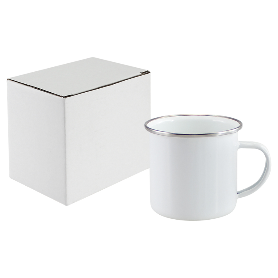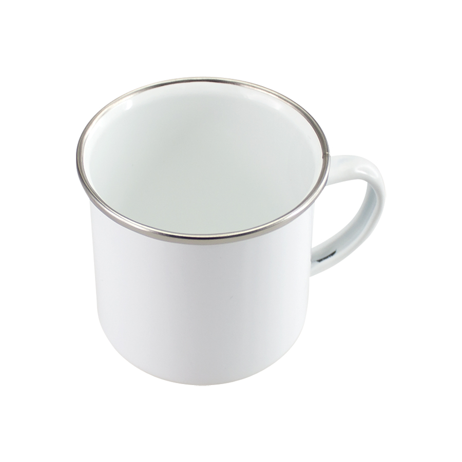 Tazón de acero enlozado «Enamel» de 350cc. con cobertura para Sublimación. Único con borde de Acero Inoxidable, que entrega higiene y protección al contacto con tu boca