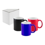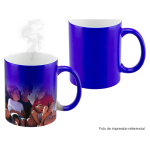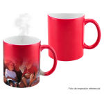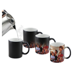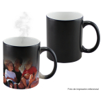 Tazón cerámico mágico color Mate (opaco) para Sublimación. Contiene polímero termo-reactor en la pared exterior del tazón. A primera vista parece un tazón negro estándar, pero en contacto con líquido caliente, la imagen sublimada comienza a aparecer nítidamente en el tazón. Una vez que el líquido se enfría, la imagen se desvanece y vuelve a aparecer el negro mate. Incluye caja blanca de Cartón.