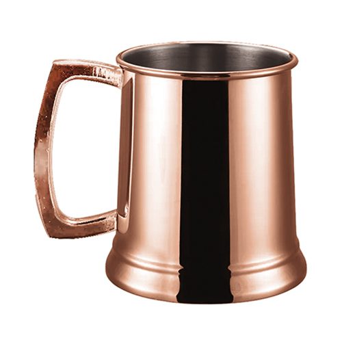 Mug metálico color cobre electro-plateado. Capacidad de 440 ml. Presentación en bolsa plástica dentro de caja de cartón negra. Acero inoxidable SS201 exterior. Interior plástico. Incluye silicona antiderrame.Producto agregado con éxito a la lista de cotizaciones