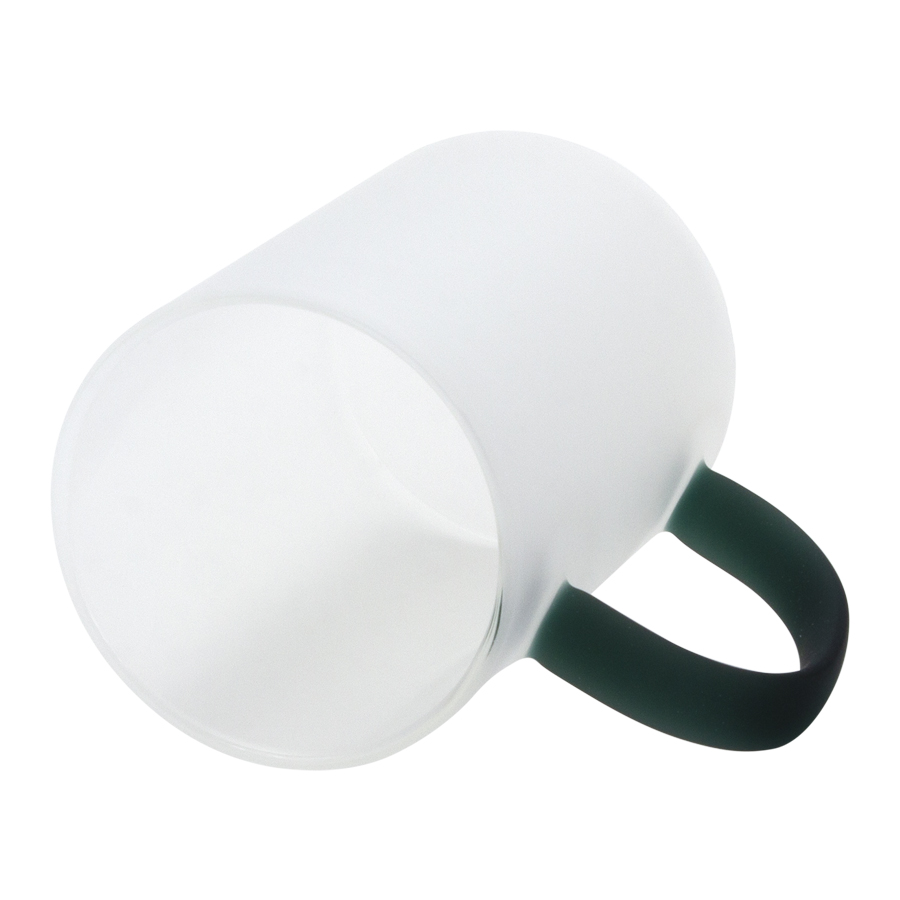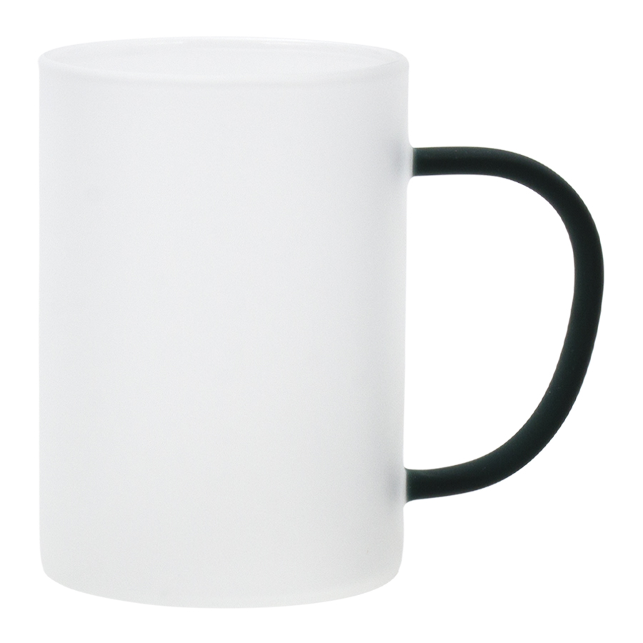 Tazón de Vidrio Empavonado para Sublimación, para líquidos fríos, con asa de color sólido. Capacidad 330ml. Presentación bolsa plástica empavonada + caja de cartón blanco. Calidad Premium ORCA.