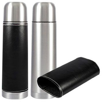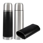 Termo de Acero Inoxidable de 1/2 Litro, con funda de PU negro (removible).