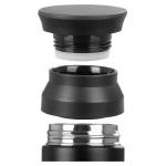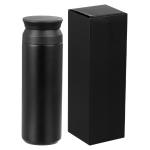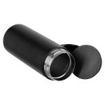 Botella térmica metálica doble pared aislante, cubierta de Polipropileno (PP) acabado mate, interior Acero inoxidable 304 SS, exterior Acero inoxidable 201 SS, modelo «SMART LID». Incluye doble tapa rosca de plástico PP negro, con sello cilíndrico de silicona, sistema de filtro circular y termómetro digital en la tapa superior, que marca la temperatura del líquido interior. Capacidad 480ml. Producto BPA FREE, para el contacto con líquidos y alimentos. Presentación en bolsa plástica transparente + caja de regalo de cartón laminado negro.
