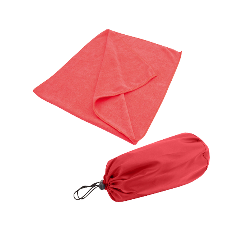 Toalla deportiva en tela Microfibra. Presentación dentro de bolsito de nylon 190D/PU.33 x 73 cm.